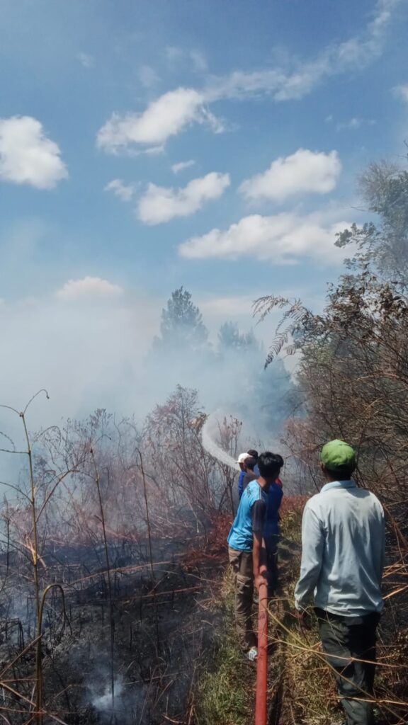 Tapanuli Utara – Kebakaran Lahan telah terjadi di Desa Hutaginjang, Kecamatan Muara, Kabupaten Tapanuli Utara. Kebakaran lahan ini terjadi pada siang ini, Senin 23/06/2025. Diduga kebakaran terjadi karena puntung rokok yang di buang sembarangan.